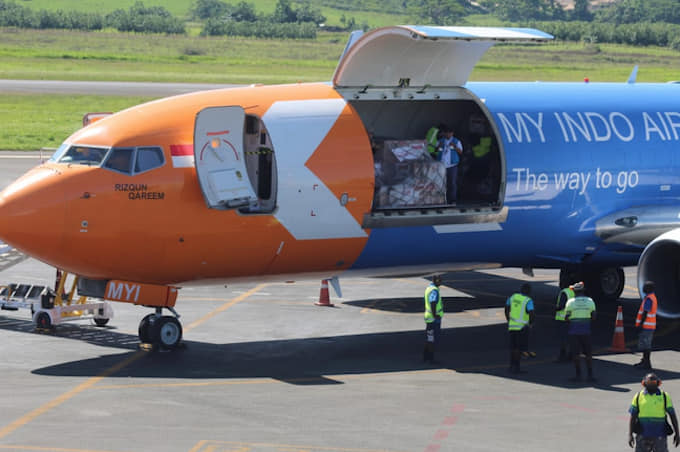 The humanitarian aid has been delivered on a My Indo Airline B737-800 cargo aircraft that departed from Soekarno-Hatta International Airport and landed at Vanuatu’s Bauerfield International Airport today.